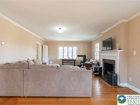 - Description: Baseboard & crown molding, fireplace w/mantel, French doors to patio
