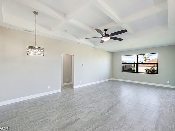 ***$10,000 TOWARD BUYERS CLOSING COSTS!!***Absolutely GORGEOUS CUSTOM Brand New 4 BR Completed in 2023!!!! Fabulous LOCATION in one of the most desirable areas of SW Cape Coral! SPACIOUS & open Airy Floor Plan with large Great Room, Split BRs & lots of natural light! IMPACT WINDOWS & DOORS, storm-rated garage door, BEAUTIFUL Bahama shutters, LED lighting, epoxy garage floor, Gutters around entire home! Premium landscaping pkg, paver driveway walkways under truss lanai, dimensional shingles & irrigation system. Spacious foyer has etched glass door & sidelight. You’ll love the high coffered ceilings & large neutral floor tile. Luxurious Kitchen features granite counters, tile backsplash, pendant lights over expansive center island, can lighting, 42" raised-panel Shaker-style wood cabinets w/soft-close doors & cabinets, crown molding, pot-filler spigot above the range & stainless-steel appliances, 4-door fridge, convection oven & whisper-quiet DW. Elegant Master Suite has tray ceiling, dual vanities, glass shower, His & Hers walk-in closets w/ventilated wood shelving. LARGE Lanai under truss w/pavers AMAZING WESTERN VIEWS SUNSETS GALORE! FHA & VA FINANCING!