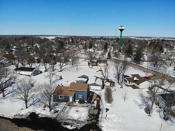 Excellent location in Verndale across from Anderson Park and just down from the school. This 3 bed 1 bath home sits on a double lot and features large main living room with redone hardwood floors, main floor laundry, full bath, and large open kitchen/dining room. Upstairs has two bedrooms and basement has a newly finished small family room and large nonconforming bedroom that could be a perfect first bedroom with addition of an egress window. Spacious yard to play and also plenty of storage in the detached garage and bonus storage shed.