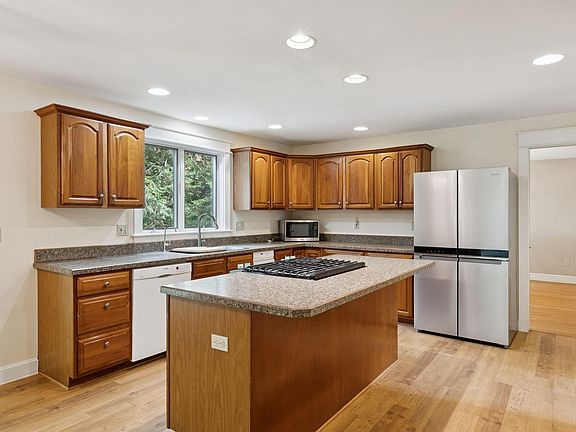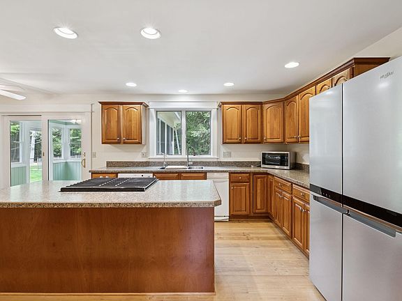 Welcome to this inviting three-bedroom, two-and-a-half-bath home set on an exceptionally private 2.86-acre lot in one of the area's most desirable neighborhoods. The expansive, open yard is bordered by mature trees on all sides, offering the perfect blend of neighborhood living and seclusion. Ideal for gatherings, the rear yard features an inground pool and a beautiful stone patio, creating a true outdoor oasis. Inside, the spacious eat-in kitchen flows seamlessly into a cozy family room warmed by a gas stove, while a sunroom at the back of the house opens directly to the patio for effortless indoor/outdoor entertaining. The first floor also includes a formal dining room, formal living room, office, and convenient half bath. Upstairs, the primary suite provides a retreat of its own with a full bath, two walk-in closets, and a private office. Two additional bedrooms, a full bath, and second-floor laundry complete the upper level. Offering the rare combination of privacy and community, this home is just 25 minutes from Portland's Old Port, 15 minutes from Portland Jetport, and 10 minutes from Gorham Village. A perfect choice for those who want the best of both worlds.