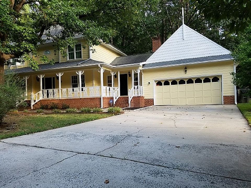 Beautiful Woodcroft traditional home on wooded, cul-de-sac lot! Formal living & dining rooms, family room w/ brick fireplace, kitchen w/ stainless appliances & desk, breakfast area w/ bay window, and 1st floor bedroom or office. Master bedroom w/ bay window, renovated master bath w/ tile/glass shower, claw tub, dual sinks, second full bath also renovated. Huge front porch, rear deck, and spacious 2-car garage. Neighborhood swim/tennis club/playground/walking trails! Conv to Duke/UNC/RTP/I40/Southpoint!