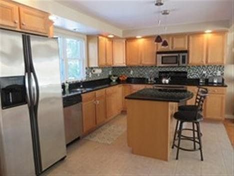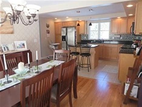 This wonderful bright and sunny two bedroom cape feels like new! Just minutes from 495, shopping, and restaurants. The kitchen boasts maple cabinets, stainless appliances, and granite countertops with center island and ceramic tile floors. Dining room with hardwood floor has sliders that open to deck and brick paver patio. The front to back living room offers lots of space for entertaining with beautiful hardwood flooring and ceiling fan. Half bath has ceramic tile and granite counters. Two generous sized bedrooms on the second floor. The master bedroom has double closets. Extra storage in the eaves and attic. Full bath with ceramic tile and granite counters. Finished basement is great for an office, playroom, or third bedroom and has it's own entrance. 10x8 storage shed and plenty of parking. Walk to private beach or take your boat on the lake!
