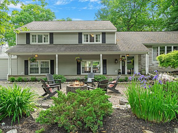 Beautifully appointed 3200 sq.ft home on rare 1-acre lot with N. Colonie schools.Custom built for living, working & playing! Offering an open-flow kitchen with command center, large island and sun filled sitting room. A work from home private office with custom barn doors. Formal living & dining room w/ fireplace & built ins. Primary bedroom w/ en-suite bath, two-sided gas fireplace, jacuzzi tub and private porch. The terrace level offers a huge family room AND additional spa~pool room w/sauna, wet bar & 1/2 bath. Both open directly onto a fabulously inviting backyard complete w/ lush landscaping, in-ground pool, stamped concrete hardscapes, outdoor kitchen, hot tub & deck. This is the one you've been waiting for!