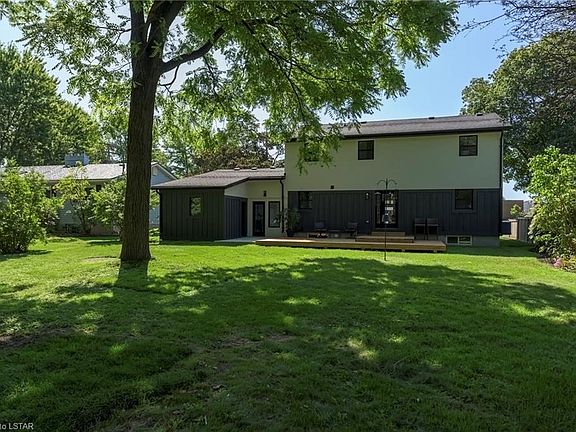Modern living minutes from London in lovely Arva! New concrete drive & walks leading up to covered porch entry. Thoughtfully updated inside and out this beauty presents turnkey lifestyle & a big beautiful lot w/ towering trees all steps to Weldon park. Main floor offers an inviting living room, chefs kitchen w/ sleek graphite-grey lacquer cabinetry/island, quartz surfaces & large dining area as well as a full bathroom & guest room/ office. Rich hardwood floors. Huge sunny mudroom you will love! Large multi-level deck off of kitchen makes summer bbq's a breeze. 2nd floor laundry + 3 bedrooms including Master suite w/ 4 piece ensuite. All bathrooms feature designer tile shower surrounds in rich colours: charcoal, eggplant, sapphire. Fully finished lower level adds rec room w/ large egress windows for tons of light, 2nd laundry, + bonus room. Designer lighting. Freshly painted in soft neutral tones. Shingles 2018. Windows 2017. HVAC 2016. Immediate possession available.