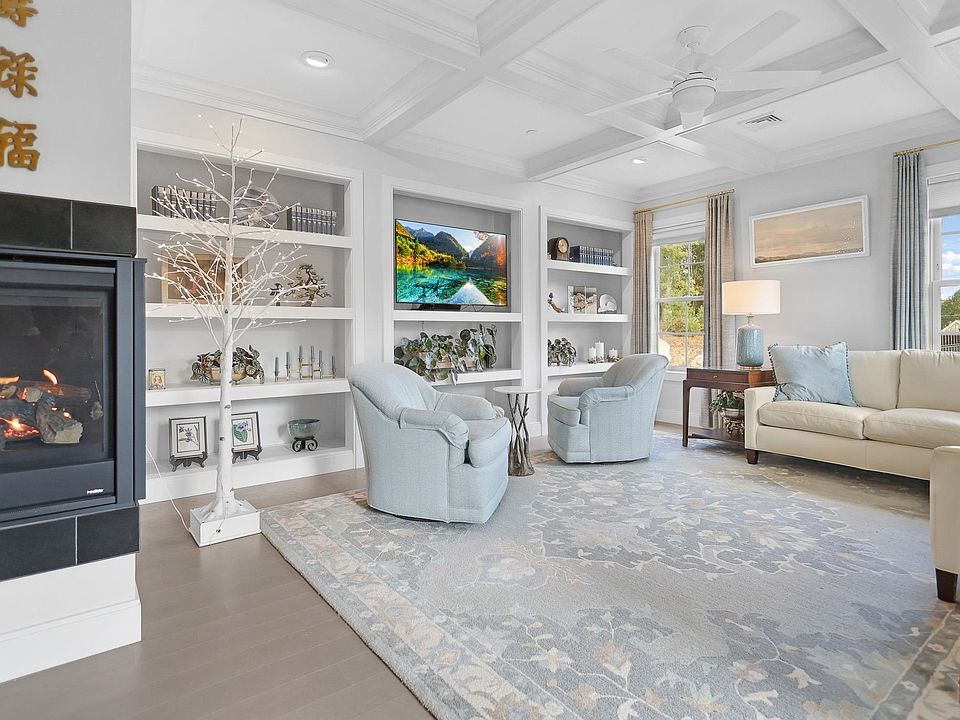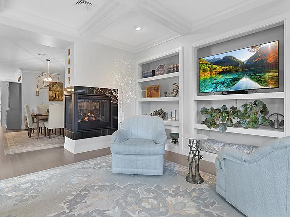 Nestled in a prime location, this beautifully designed three-bedroom condominium blends sophisticated style with comfort and modern convenience. The spacious floor plan includes a bright and airy living room with a dual fireplace, seamlessly connecting to the gorgeous dinging room with wet bar and beverage refrigerator. With custom upgrades throughout, the kitchen features striking cabinets, top-of-the-line appliances, and a massive island with comfortable sitting area, creating the perfect atmosphere for casual meals or entertaining. A luxurious primary suite offers a spa-like retreat with a crown moulding, designer closet, and a stunning en-suite bath with a state-of-the-art shower system, double vanity, and a walk-in soaking tub. The separate office, complete with a custom-built Murphy bed offers versatility and function, while the gorgeously designed bathrooms showcase exquisite finishes and modern elegance, making every corner of this home a true sanctuary. Step outside to your oversized covered patio, ideal for relaxation and entertaining. Additional amenities include an expansive laundry room, a large storage unit, and garage parking. Impeccable craftsmanship and attention to detail are evident throughout this impeccable first-floor unit, which offers the convenience of single-level living filled with luxury. Showings begin at open house Sunday 12-2