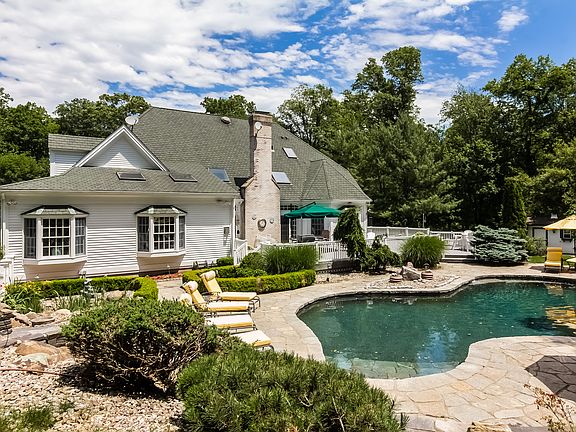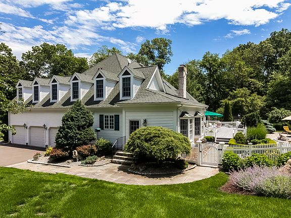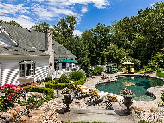 Exquiste custom built colonial close to the beautiful Guilford Green. This secluded property features a first floor Master Suite with tray ceiling, complete with double gas fireplace, sitting room with built-ins masterbath with jaquzzi tub and glass shower. The first floor features a large open professional kitchen with granite counters large island with beautiful breakfast nook complete with bay windows which overlook beautiful manicured gardens. The great room has a fireplace with built in cabinets vaulted ceilings with french doors which leads out to a large deck and patio. The grounds are filled with glorious flower garden beds complete with a waterfall feature and heated gunite pool. This home has so much to offer including Grand Manor lifetime roofing shingles.
