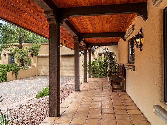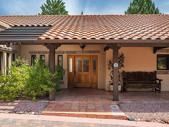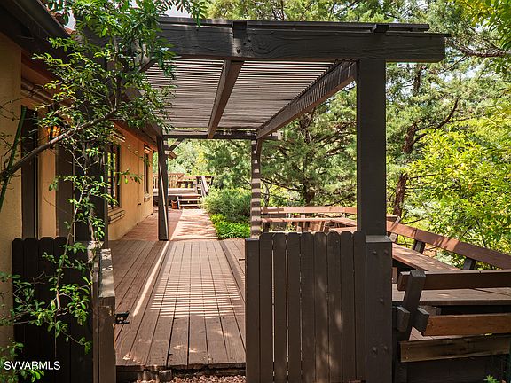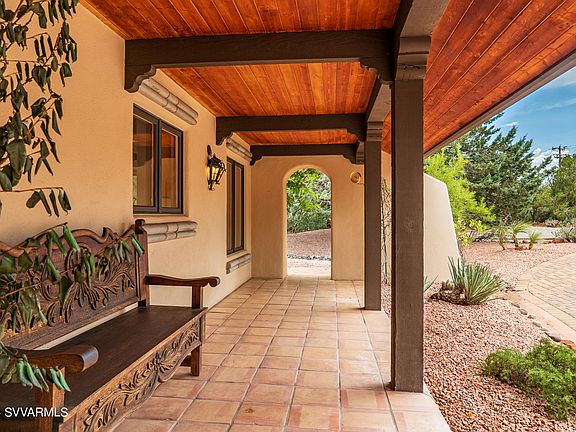 Whether you're seeking relaxation, meditation, or inspiration, there's a corner of this marvelous home and property where it can be found. From the fabulous mountains outside to a peaceful seasonally-flowing arroyo out back, to airy vaulted ceilings in the living room, this house and the land it sits on celebrate the majesty of the wild southwest. Out front the exterior greets you with a quiet cul de sac location, stucco siding, a fabulous pitched tile roof emulating the surrounding mountains, an inviting paver drive, and beautiful low-maintenance landscaping. The backyard welcomes you with a partially covered deck overlooking the arroyo and a spacious raised deck at the opposite end of the yard, both perfect for entertaining and private time. Inside you'll find lots of natural light illuminating a smartly designed split floor plan. A mix of tile, wood, and carpeted floors flow through the spacious living room with gas fireplace, a roomy galley-style kitchen with electric stove, an attached dining area, and the home's spacious bedrooms featuring walk-in closets. An additional bonus rooms provide excellent space for personal expression and mindful moments. Off the far side of the garage, you'll find the solitude of an artist's studio, a wonderful space for enjoying intimate time with guests or moments of personal reflection. If you're looking for classic Sedona living, look no further.