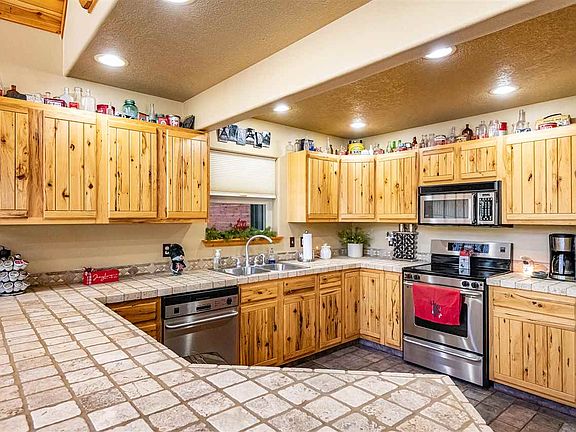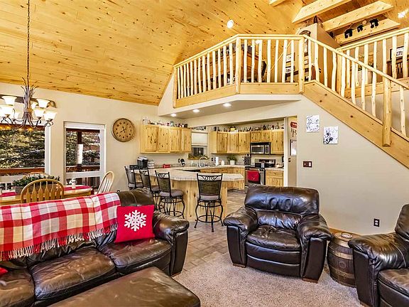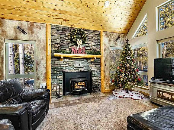 Beautiful and well-maintained chalet style home, situated on a private 1.51 acre lot backed up to hiking trails and a quiet cul-de-sac. Covered entry from oversized garage you can walk into this cozy home with a separate laundry room and plenty of pantry storage. An open living plan with kitchen, dining and living room all sharing a large wall of windows where you can enjoy abundant wildlife viewing or walk out onto a large trex deck and enjoy New Mexico's blue skies. Two bedrooms on the main floor are oversized and could accommodate two queen sized beds if needed. Master bedroom with an adjoining loft on one side and an outdoor balcony on the other. All of this and outdoor living too! Hot tub and stone fire pit area both with views of the woods.