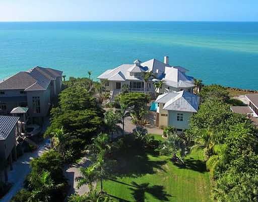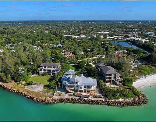 ACTIVE WITH CONTRACT. Welcome to one of Sarasota's grandest views. Situated on North Siesta Key on a gated +/- 1 acre, this prime Gulf-front real estate is located in the prestigious Sandy Hook neighborhood. Siesta Key Village is at your doorstep yet the privacy of thisproperty reigns supreme. Depending on the tides and season, one can walk the beach from the gulf side of the home for 2.5 miles. The gated entrance opens to a long driveway flanked by a lush lawn and tropical gardens. This warm and sophisticated home enjoys sunsets from every possible angle. Constructed by noted builder, Bruce Saba, the quality is immediately apparent. Heart pine floors, 20" deep arched doorways, a true cook's open and spacious kitchen featuring Neff cabinetry, media room, formal dining, a floor to ceiling cherry wood library and 4 stop elevator. Expansive Ipe wood observation decking connects the main home with the separate guest house. White on white interiors, reclaimed wood pine floors and walls, the spacious quarters boastsa living room, bedroom and loft, kitchenette and dining. Garage parking accommodating 6 cars.