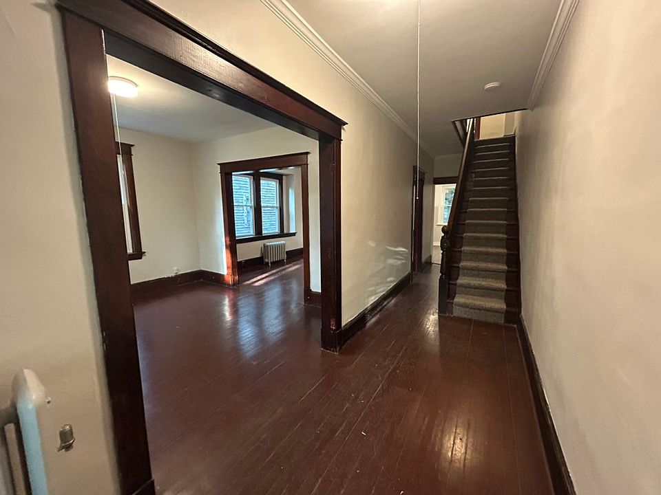 Newly renovated 3 Bedroom, 1 Bath unit in a side by side duplex. New carpets, floors, kitchen and bathroom! Enjoy an open concept living room, dining room, and kitchen with a pantry and laundry hook ups on the first floor. Spacious bedrooms, bonus room, and bathroom on the second floor. Front and back sitting area as well as shared yard. Owner pays for trash removal, sewer and provides lawn care. All other utilities including electric and natural gas for heat, hot water and cooking, will be the responsibility of the tenant. No pets allowed. On street parking available in front of the building. This unit is deleaded, so families are welcomed! First, last, and security deposit required at signing.