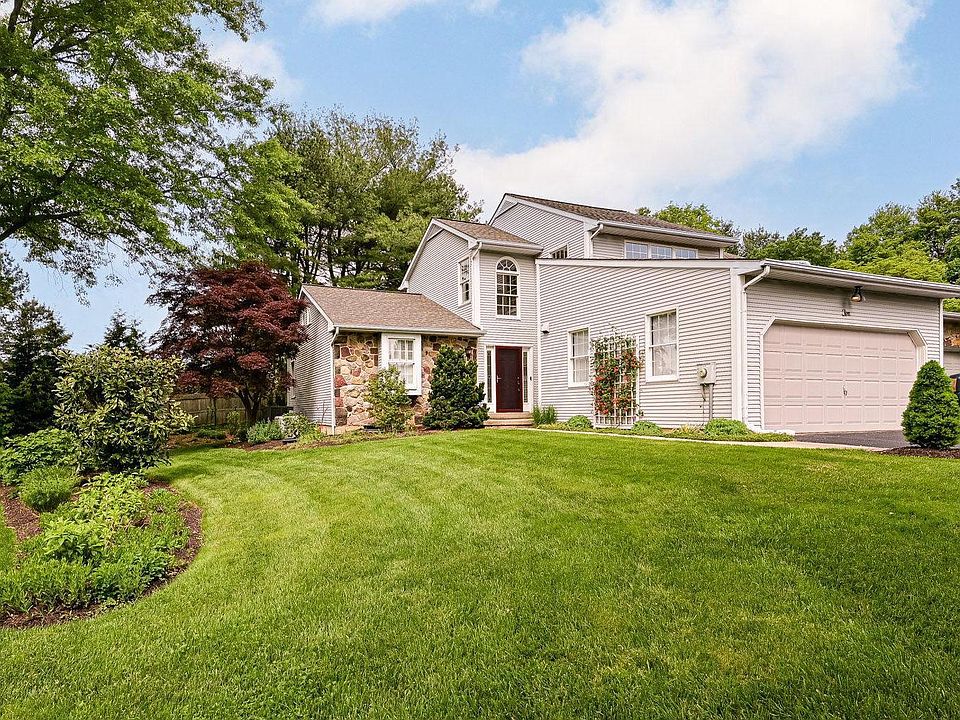 Terrific 3 bedroom 2.1 bath twin in Evergreen within the City limits of Newark. This home has wonderful curb appeal with nice landscaping and many beautiful plantings. Features include a new Trane HVAC system May 2023., Generac generator hooked to natural gas line., and an (EV) Electric car charger in the two car garage. There is a remodeled "Georgi" Kitchen with Jenn-Air appliances, granite countertops, Plain and Fancy Cabinets with lots of storage and LVT flooring. The home has an open and contemporary floor plan with custom shelves in the Dining and Living room, and other desirable features include vaulted ceilings and skylights. The primary bedroom is on the first floor and features a large walk in closet and a remodeled primary bathroom. Off of the living room there is a sunroom that overlooks the yard, small deck, hardscaping , and privacy fence across the back. There is also a convenient first floor laundry room with front loading LG washer and dryer. The second floor has two bedrooms and one shared full hall bath, The large unfinished basement is perfect for extra storage space. There is also a whole house water softener. Come see it today!
