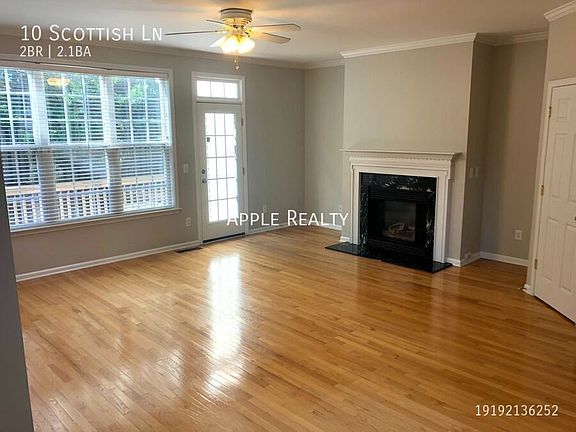 Beautiful 2 BR, 2.5 Bath End unit townhome in S. Durham location. Features include light filled and open floor plan, Kitchen with Gas range, Refrigerator, Dishwasher, Built-in Microwave & cozy Breakfast nook. Bedrooms are upstairs with their own bathroom & spacious closets. Washer & Gas Dryer provided. Central Heat & Air (Gas Heat). Back deck & exterior storage closet. Approximately 1500 Sq Feet. Minutes to Duke and UNC Chapel Hill.