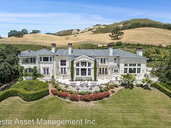 A gorgeous vineyard estate set amidst 101 acres of rolling hills of East Bay Vineyard. All outbuildings total 26,739 sq. ft., including the 10,000 sq. ft. main house, a showcase car barn, 1 bedroom guesthouse and pool house. Featuring imported limestone fireplaces, crystal chandeliers, an elevator, and a custom pool with elevated spa waterfall. The gourmet kitchen with island is complete with Butler''s pantries and Dacor oven with range. Host large parties in the banquet size formal dining room. An exceptional 748 sq. ft. wine cellar features a dining area, dumb waiter, wet bar, half-bath and custom temperature controlled wine storage room for 5,000 bottles. Numerous balconies and decks offer stunning panoramic vistas of the vineyards, Las Trampas foothills and beyond.