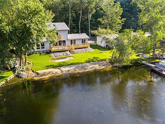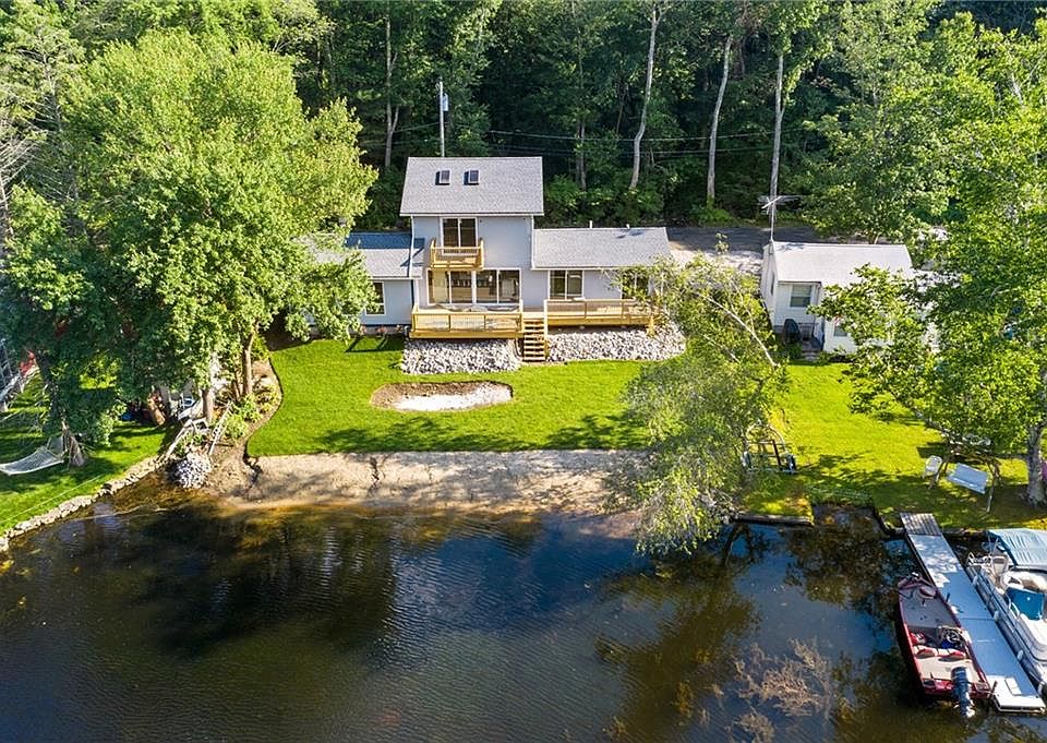 This beautiful 2-3 bedroom lakefront home is located on Slacks Reservoir where you can enjoy gorgeous views from one of the five sets of sliding doors or from one of the two decks overlooking your private beach. This home has been completely redone - including new electrical, plumbing, windows, roof and septic. There are hardwoods throughout this two bedroom home, vaulted ceilings, recessed lighting, granite countertops. There are literally too many amazing features to list, this is a MUST SEE. Wake up every day in your master suite with walk-in closets and feel as though you're on vacation. There is nothing to do but move in and enjoy the Summer - boating, swimming, jet skiing, fishing, paddle boarding the list of activities to enjoy on this privately owned Reservoir are endless.
