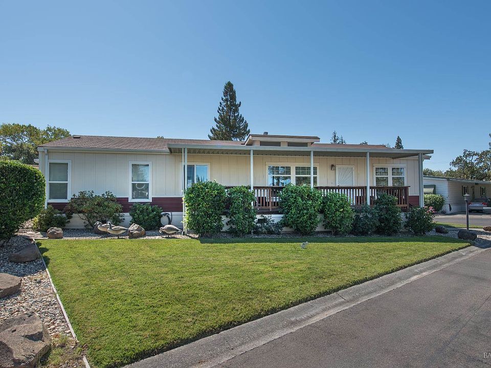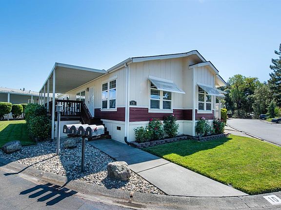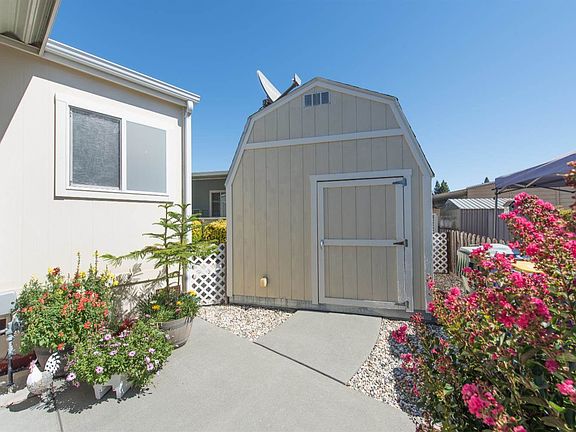 Welcome to Shamrock Mobile Home Community, one of the area's most sought-after 55+ mobile home parks! This spacious 3-bedroom, 2-bath home offers over 1,600 sq. ft. of comfortable living. The beautifully designed kitchen features a center island, Corian counters, stainless steel appliances, and a sunny dinette area perfect for casual meals. A vaulted-ceiling family room with skylights and a cozy gas fireplace creates a warm and inviting atmosphere, while a separate dining room is ideal for entertaining. The generous primary suite includes a walk-in closet and a large bathroom with dual sinks. Enjoy relaxing outdoors on the covered front deck, and appreciate the convenience of covered parking plus an additional space that fits two cars. A handy storage shed is included as well. Shamrock offers wonderful amenities including a pool, clubhouse, and a variety of community activities all in a welcoming, well-maintained setting. Don't miss the opportunity to make this beautiful home yours!
