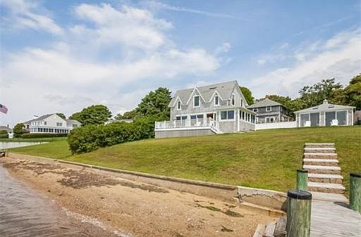 On the shore of Butlers Cove (aka Peter's Cove) this home has been renovated in the last few years. Open floor plan creates a water view from almost every room. New kitchen with all top-end stainless appliances, new flooring and windows. Magnificent views of Mass Maritime and Buzzards Bay, awesome dock can accommodate a sizable boat(s). This property offers many extras, including a cozy guest cottage for your overflow guests....