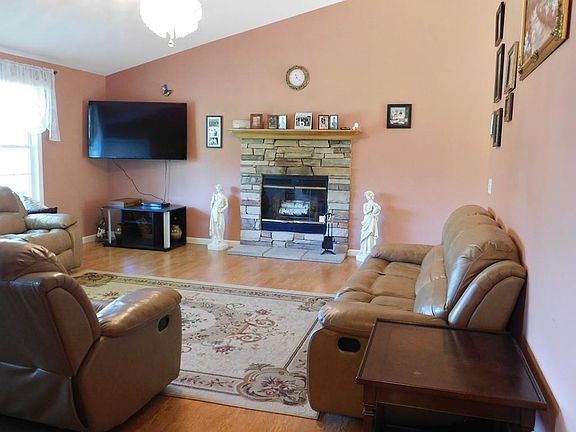Your Search Is Over! Recent Custom Built Sprawling Vinyl Sided Ranch set on nearly 2 ACRES offers one floor living at its best with a Beautiful country setting surrounded by the wonders of nature & tranquil pond. An expansive Open floor plan connects the living rm w/stone fireplace to the dining rm & kitchen w/cathedral ceilings making this a Spectacular entertaining area. 3 Generous sized bedrms, 2 full baths & closets galore! Make your way to the over sized deck through sliding glass doors from the dining rm where you'll enjoy an Amazing outdoor space w/ a view of a private pond or relax on the large covered front porch that extends the entire length of the house. There's lots of potential to Increase your living space in the Huge 29x24 walkout basement already framed & dry-walled just needs the final touches to make it the perfect spot for an extra large familyrm or play room with full size windows offering plenty of natural light! This well maintained peaceful home can be yours!