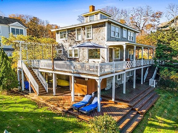 Breezes from the sea, natural sunlight and the aroma of summer Wisteria fill this Sagamore Beach home. Incredible location- steps to beach. This 4 bedroom, turn of the century Cape has been lovingly restored and scrupulously maintained. An abundance of character and thoughtful details througout; beach stone fireplace with Cataumet Saw Mill mantel,original fir floors, built in bookcases, recently remodeled kitchen with farmers sink and gas stove, and 3rd floor study with sweeping, 180 degree views of Cape Cod Bay. Upstairs 4 bedrooms: keep the plantation shutters open and enjoy the ocean view! Remodeled bathroom with porcelain floors. 2021 Williamson furnace. 85 gallon hot water tank. Outside 4-season garden with 6 zone irrigation, outdoor shower, pressure treated deck wrapping all the way from front sitting alcove to the back entertainment deck which overlooks the lush, green lawn of private backyard. Lucrative rental history. Walk to tennis/playground.