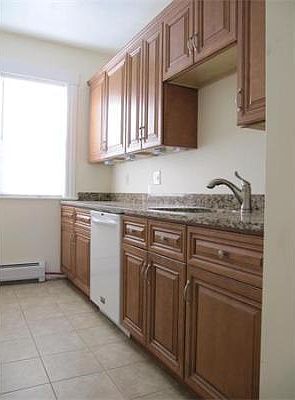 Absolutely beautiful property totally renovated from top to bottom. Apartment includes six main rooms. Two large front rooms, and three bedrooms with ample closets all with refinished hardwoods. Add to that the spacious ceramic tiled kitchen and pantry with new cherry cabinets and granite countertops throughout. Pantry and bath have all new plumbing fixtures. The rear tiled hallway leads to an all-season porch and laundry which are also tiled. New appliances consist of refrigerator, range, microwave and dishwasher all from the Frigidaire Gallery Collection and the washer and dryer are LG high efficiency models. A high efficiency gas fired boiler, hot water baseboard heat and indirect hot water heater are all brand new and will give the ultimate in cost effective operation. New wiring provides the latest in convenience and safety for switches, outlets and energy efficient lighting.