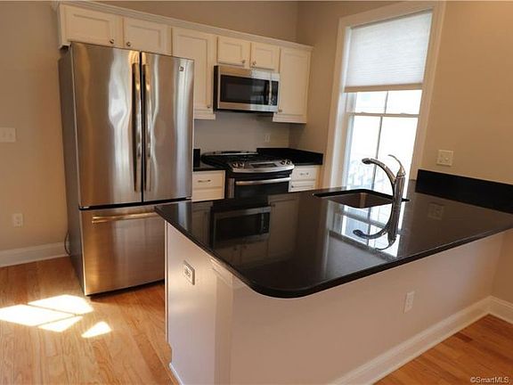 Enjoy a carefree lifestyle in this bright end unit Townhouse style unit. This unit offers an efficient first floor with open floor plan, kitchen with granite counters and stainless appliances. There is a combination living and dining room and convenient half bath. The second floor has two spacious bedrooms each with a private full bath and second floor laundry. Enjoy the sites and sounds of living in Storrs Center from your private covered front porch. The unit has a one car garage. Local amenities within walking distance include UCONN, shopping, transportation, medical, restaurants, community center and Storrs Center.