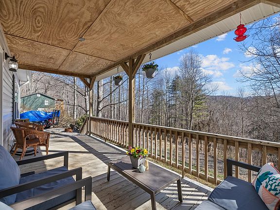 Delight in the outdoors with your own mountain paradise. Situated on nearly 2 acres, with incredible views. Primary bedroom is on the main level with 2 bedrooms and extra space upstairs that could be used as an open office area or an additional sitting/play area. Lounge by the fire pit and take in the wooded mountain scenery and enjoy watching the wildlife around this home. If you love a good hike out your front door, this home is it! Hike up the mountain for a view of Mt.Pisgah and our rolling mountains of Western North Carolina.