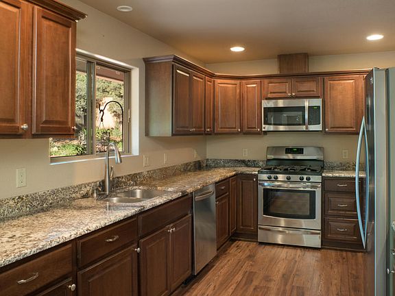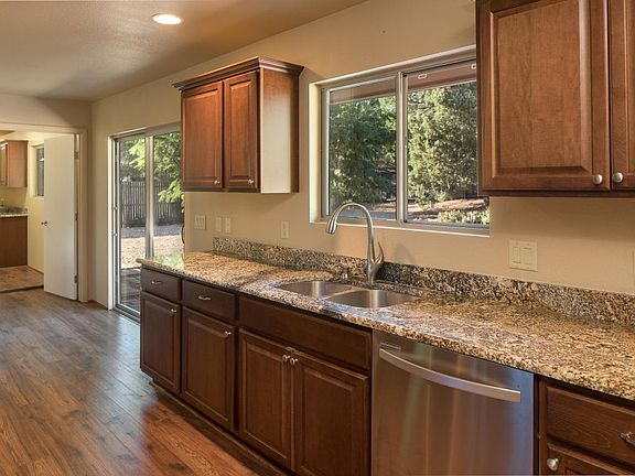 Tastefully remodeled single level home centrally located in West Sedona just minutes away from national forest trails. This tastefully remodeled home (done in '14) sits on a corner lot in a quiet subdivision with a fenced backyard for privacy or pets. New kitchen includes granite countertops, stainless appliances and quality cabinetry. Newer wood flooring spans the kitchen, dining and living room areas and the main hallway. Sliding glass door near kitchen opens onto a small covered patio and large backyard treed in for your privacy. New baths, flooring, paint, roofing - nothing else left to do! Perfect home for full time residence or buy now while the prices are low and rent it out until you retire!