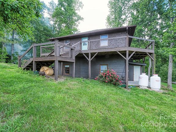 Beautifully updated with modern touches and mountain charm, this property holds so many options whether investing with the potential of 3 rental opportunities or full time / 2nd home living with STR possibilities. Sited perfectly at the top of a gentle knoll with spectacular mountain views that are easily captured from oversized wrap around deck overlooking large yard, mature landscape and fruit tree. Conveniently located in a quiet area of Fletcher gives you easy access to everything Hendersonville and Asheville have to offer. Renovated inside with new flooring, paint, trim, cabinets, countertops, appliances and fixtures. Outside updated with new siding, cedar shakes, composite decking, rails and tin roof over front porch. Storage shed got a quick exterior makeover with new paint and tin roof. Septic system was pumped inspected and updated with expansion to accomodate 4 BR. RV pad with decking and storage shed for additional rental income. Move in or Rent Ready!