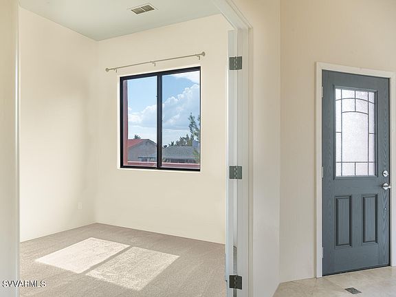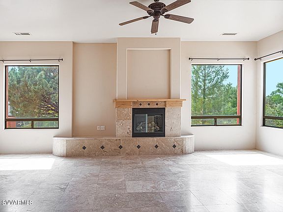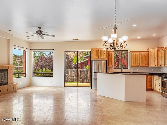 This is a lovely home on a quiet cul-de-sac. 3 BRs/2 Full Bathrooms. Light and bright with a cathedral ceiling in the combined large living, dining and kitchen area. Great home for entertaining friends and family. Enjoy the carefree gas fireplace while also viewing Thunder Mountain. The 3rd BR has beautiful French doors and can be used as a BR, den, study, office, etc. Patio doors lead to outdoor living from the living/dining area and Master Bedroom. Thunder Mountain and Coffee Pot Rock can be enjoyed while lounging on the patio. Conveniently located to hiking trails, various mountain views, restaurants, shopping, Uptown, Tlaquepaque, or visit (less than 1 hour) Jerome, Historic Cottonwood and Flagstaff. No HOA. New refrigerator, washer, dryer, water heater, and water softner unit.