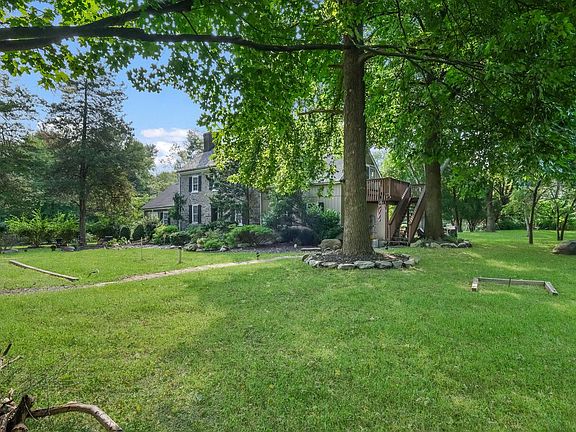 Exceptional 1762 Stone Farmhouse filled with historical charm and character set back 250' feet from road. Wonderful 2.63 Acre private setting (NATURE LOVERS PARADISE)) with mature trees, pond and picturesque stream. Impeccable stone house features higher ceilings, original wood flooring, exposed stone walls and beams, original working walk in fireplace plus two additional fireplaces with federal period mantles and attractive built ins. Gardeners delight with functional greenhouse. Studio or office space with separate entrance and deck. Updated mechanicals with newer propane hot air heat, central air and reverse osmosis water treatment system. Very convenient location just south of route #332 and minutes to all shopping, Newtown Boro, and I-95.