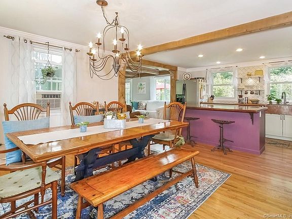 Some one is going to be very lucky to get this home it has truly been lovely remodeled and it shows. Updates include: Kitchen, Bathes, Windows, Roof, Boiler, 200 Amp Electric, well pump and Interior/Exterior Paint Open floor plan of Kitchen(huge center island and copper farm sink, Dining Room and Family Room with vaulted beam ceilings. Hardwood floors thru-out. Master bedroom with great master bath with huge walk in shower and seamless glass doors and whirlpool soaking tub. Walk out finished lower level adds additional800 sq ft. The property has stunning perennials gardens, patio for relaxation to the sound of the distant brook. Shed
