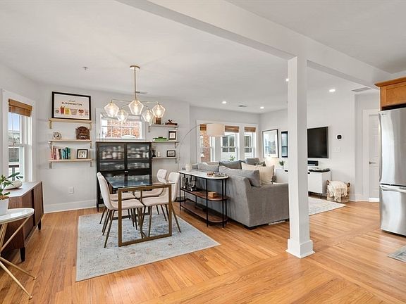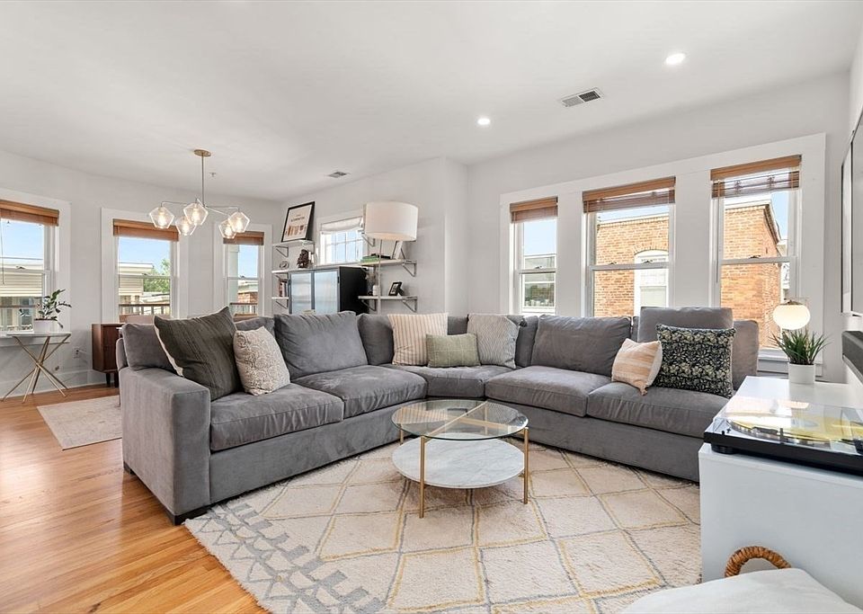 Set on a private way in Spring Hill, this top-floor two bedroom home is drenched in natural light from 21 custom windows across four exposures. The open-concept living/dining/kitchen area offers effortless flow to a sun-filled private porch with city views—perfect for entertaining. The kitchen features a full suite of new high-end appliances (2023), an ample cabinet storage with granite countertops, while the bathroom has been completely renovated with luxe finishes, double sink vanity and beautiful shower. Each bedroom has distinct appeal: one boasts an 8-ft walk-in closet, the other is surrounded by 8 windows and custom built closets. Highlights include gleaming hardwood floors, central A/C, custom closet organizers, and a 117 sq. ft. private heated storage/laundry room. Enjoy a shared common yard. Lead Paint Compliance Letter on file (2019). Prime location near Porter Sq (.6 mi), Davis Sq (1 mi), Green line T @ Lowell St (.5 mi), and the Community Bike Path.