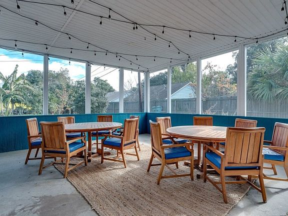 Discover a spacious 5-bedroom, 3-bath home at Retro Rainbow Herb River Hideaway, perfect for families, friends, and pet guests. Just a short walk from the river, enjoy making memories on the large outdoor patio, complete with dining tables, a bar, ping pong, cornhole, and giant Jenga. Located only 8.5 miles from downtown Savannah and a scenic 30-minute drive to Tybee Island, this home is a great retreat. The property provides both professional photos and real-time images from the cleaning team, ensuring you know exactly what to expect. Upon arrival, find a parking pad outside the screened-in patio. Access the home through the patio to enter the open concept living area. Relax with a 70" TV complete with Roku in the living room. Multiple couches, including a queen-sized sleeper sofa, ensure plenty of space to chill out. The dining room connects to both the living room and the kitchen, featuring an oversized farmhouse-style table that seats 8 adults comfortably. The newly updated kitchen with stainless steel appliances has the basics you need to settle in and feel at home. With 5 generously sized bedrooms, there's plenty of room for large families or groups. Bedroom 1 has a king-sized bed with an additional queen-sized sleeper sofa, serving as the master suite with its own bathroom and a 50" TV with Roku. Bedroom 2 is perfect for kids with two twins over full bunk beds, comfortably sleeping 6 kids. Bedroom 3 has a queen-sized bed and shares a jack-n-jill bathroom with Bedroom 4, which has two full-size beds. Bedroom 5 completes the sleeping arrangements with a king-size bed. The home has 3 full bathrooms, a washer and dryer on-site, and a wonderful covered porch with a bar, lots of seating, and plenty of fun and games for all ages. While the house has a wheelchair ramp, it is not ADA compliant. Guests will not have to navigate any stairs except for the master suite, which has two steps leading down into the room. Pets are welcome with a fee. Pets must be crated when left unattended in the home, are not allowed on furniture or beds, and all waste must be cleaned up from the yard. All pets require a non-refundable pet fee. If there is evidence of pet hair on the furniture, excess hair in the home, stains, or waste found in the yard or home, you will be charged the cost to clean this. The location on the marsh provides the perfect backdrop for what makes Savannah so charming, with large mature trees dripping in Spanish Moss and breezy nights. It is close to dining, shopping, and adventure. Driving is recommended, and parking is offered for guests. However, Uber and Lyft service the area as well. The house has a digital combo lock pad, and you will receive the code upon check-in. Check-in and check-out are automated to provide maximum privacy and flexibility. Interaction is minimal, but assistance is available if needed. One of the king bedrooms requires going down a few stairs, while the rest are on the main level. A signed rental agreement is required, and guests must be 21 years of age to book.