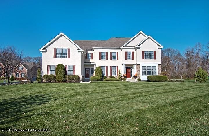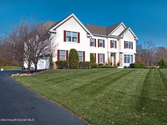 A truly spectacular home, nestled away on a cul de sac in the most sought after Woods at Cream Ridge in Upper Freehold/Allentown sits this magnificent 4300 sq ft home with an additional 1400 sq ft finished basement. This true center hall colonial offers the best in today's selections of what you want in a home. Two story foyer with back staircase, first floor study, expanded gourmet kitchen with morning room addition. two story family room with gas fireplace. Master bedroom featuring a trayed ceiling and sitting room. Gracious sized master bath with expanded shower and soaking tub. second story playroom/loft with with railing overlooking the family room and kitchen. Full walkout finished basement with theater room and den. Craft/exercise room and 1/2 bath. Back yard offers a secluded retre