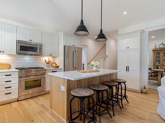 Welcome to 10 Smoke St. a stunning 3-bedroom, 2-bathroom modern farmhouse offering 1,719 sq. ft of one-floor living on a beautifully landscaped .93-acre lot. Set in a desirable new neighborhood, this home blends timeless design with modern amenities, creating a perfect balance of comfort, style, and function. Step inside to find an inviting open-concept floor plan, highlighted by Hickory brushed hardwood floors, Restoration Hardware lighting, and custom window shades throughout. The spacious living area centers around a cozy gas fireplace, providing warmth and ambiance year-round. Ceiling fans and central air ensure optimal comfort in every season. The kitchen is a true focal point, featuring white shaker cabinetry, sleek quartz countertops, and premium Thermador appliances. A large island offers additional prep space and seating, making this kitchen ideal for both everyday living and entertaining. The primary suite is designed as a private retreat, complete with a walk-in closet and a spa-like bathroom featuring a tile shower and a free-standing soaking tub. Two additional bedrooms provide flexibility for family, guests, or a home office—all conveniently located on the same level for true ease of living. Above the garage, a finished bonus space adds even more versatility for a playroom, media space or quiet retreat. Outdoors, enjoy mature gardens, a convenient shed, and the welcoming feel of a newly established association. Showings to begin on 10/25 OH from 11 am-1pm