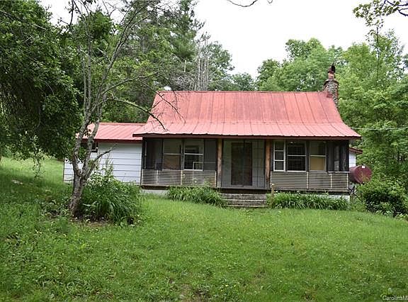 Cabin in the country. Adjoining lot makes total 2.15 acres. Garden space and excellent for an orchard. Views of Mt. Mitchell and the Blue Ridge parkway from the top of the lot. Small Creek runs to on the side of the yard. Several rustic farm buildings. Stain glass in front door. Cute covered porches on front and back. House has areas with new laminate, and areas with wood flooring. Some new windows have recently been added. Siding is masonite and T1-11, added in the 80's. A few more touches are needed for a conventional loan. Bring a CASH or RENOVATION LOAN offer.
