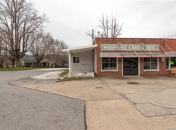 Fantastic investment opportunity in the heart of Hoopers Creek, Fletcher, NC. One parcel totaling approx 2.2 level acres with 3BR brick house plus 1/2 of a commercial duplex building (approx 1450 sq ft) that used to be the old Hoopers Creek Grocery. Property is being sold all together as a single parcel, not subdivided. Plenty of land left to explore the options for building two additional houses on the property. House and commercial unit both have tons of potential, but need work. House is mostly cosmetic. It was rented for the past 8 yrs until 2020. City Sewer runs through the corner of the property and city water may have to be accessed from across the road for building additional structures or connecting to the commercial building. Buyer to conduct all discovery. Property is offered As Is.