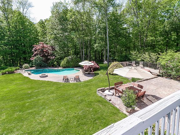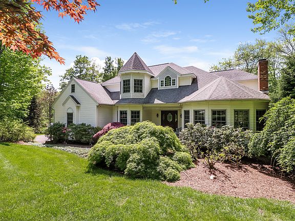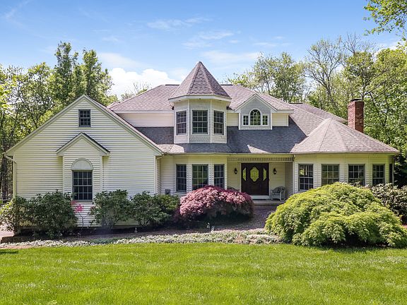 Storybook meets Southbury! First time on market, this gorgeous custom designed and built Victorian-style colonial home with torret in idyllic country setting on 2.15 flat acres in sought after Southridge Estates neighborhood. With beautiful lighting and walkway it is set back from quiet cul-de-sac street on beautifully landscaped yard, this home is perfect for entertaining! Welcome inside to find a welcoming foyer with plenty of woodwork leading to the great room with freshly painted soaring ceilings, bright and sunny eat-in kitchen with granite and center island, 2 sinks and built-ins, formal dining room with window seat and textured ceiling, a full bath and lovely main level office. Upstairs offers 4 bedrooms all with hardwood, generous closet space with a wonderful master bedroom with soaring ceilings in reading nook, propane fireplace for cozy evenings, full bath with tiled-walk-in shower and oversized walk-in closet. Enjoy solid wood doors and hardwood floors throughout the home. Large lower level has over 680 sq ft of finished space, a full bath, workshop, potential expansion/storage space, and is well lit with windows & 2 sliders leading to great patio and expansive backyard. Spacious private deck with awning and stairs to stone patio below leads to an inviting in ground Gunite self-cleaning pool, and fire pit to relax and warm up after evening swims with friends and family. Nothing to do but move in and begin enjoying vacation at home this summer at the pool!