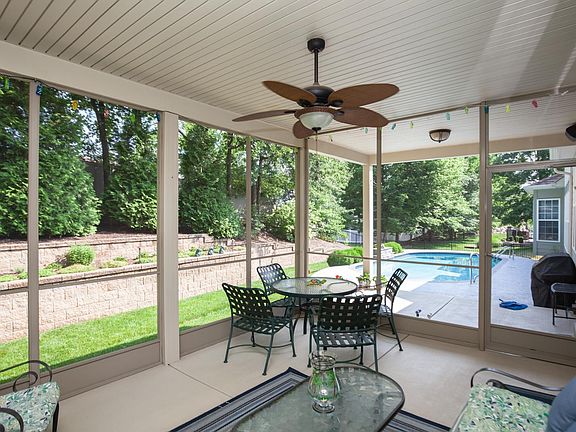 Enjoy the popular Spring Mill Estates subdivision in this wonderful Ranch home w/ a very OPEN Floor Plan offering 2928 SQ FT of living space w/ 4 bedrooms & 2.5 baths. Enter into the 16 x 6 foyer w/ wood flooring & Crown Moulding. The 16 x 11 Dining room features Wainscoting & Crown Moulding too. Relax or entertain in the 21 x 15 Great room w/ 12 ft ceilings w/ White beams & a wall of windows overlooking the in ground pool. The 18 x 12 Kitchen has a large center island w/ a raised Breakfast bar, 42" White cabinets w/ Crown Moulding on them & slow close drawers. Also a 6 x 4 Walk in Pantry. There is even a 15 x 13 Hearth room w/ a Gas Fireplace that leads to a 15 x 11 screened in porch to the 30 x 13 inviting in ground pool. The 18 x 17 Mastersuite has a 10 x 7 Walk In Closet & a luxury bath with a corner soaking tub, double sinks & 48" shower with bench. There are also 3 good sized Bedrooms. Lower level has a deep pour & an egress window.
