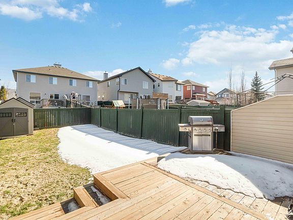 Welcome to Spruce Village, this 1/2 Duplex offers 3 bedrooms and 2.5 bathrooms. Conveniently located near the edge of Spruce with great access to major routes and shopping. This move in ready home offers open layout with corner gas fireplace. Plenty of cabinets and counter space. Newer dishwasher, newer hot water tank, newer washer and dryer. Sliding patio doors to the large deck and yard with garden shed. Upper level offers a large primary bedroom with walk in closet and 2 more bedrooms. Lower level offers a flex room with full bath and plenty of storage. Fully fenced yard with garden shed and a single attached garage. No condo fees.