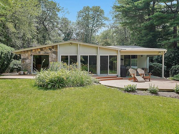 Welcome to this lakefront Contemporary style home on Roaring Brook Lake. You will feel the days stress melt away as you enter the circular driveway and approach this updated modern residence offering many architectural details. Home lives as a 3 bedroom, with the smallest room presently used as a baby's room. Home features an open-floor plan for todays living, starting with the spacious entry leading you to the great room with beamed cathedral ceilings, stone fireplace and UNOBSTRUCTED views of the lake. Walls of glass doors overlooking your park-like property and access to the lake from your living room. Beautiful hardwood floors throughout the house. The Chef's kitchen offers granite counters, stainless steel appliances, is perfect for entertaining. The private Master suite features the master bathroom with an oversized shower, large Jacuzzi tub, walk in closet, glass doors to a private patio,where you can take the morning views before you start your busy day. Canoe, Kayak, Sail, swim and enjoy all Roaring Brook has to offer. Perfect weekender or year-round home, easy NYC commute, just over the Westchester border.
