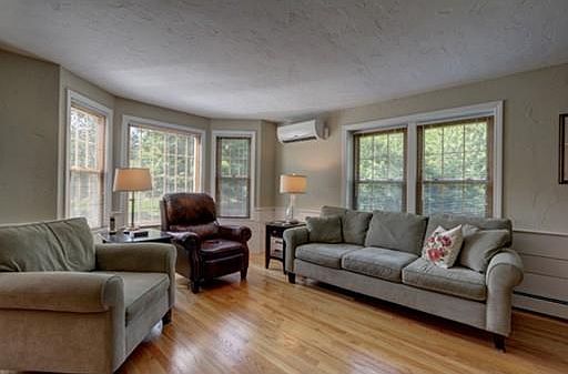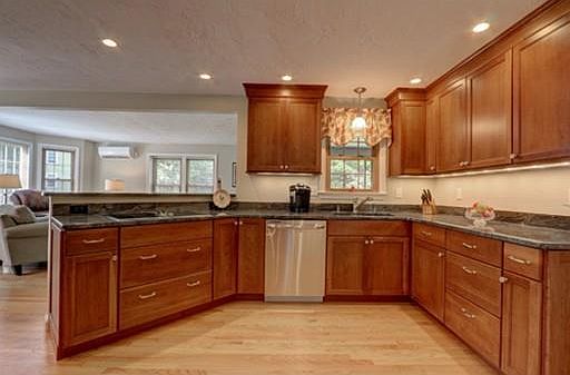 This impeccable colonial is nestled in a quiet neighborhood, yet offers a quick commute to rt 495. The kitchen is both functional and beautiful offering an abundance of cabinets, a breakfast island and peninsula complete with cooktop, and stainless steel appliances. The fireside family room is open from the kitchen and is great for entertaining and family fun. This home also offers formal living and dining room, as well as 1st floor laundry, gleaming hardwood floors, and central air conditioning. All three bedrooms are very spacious and bright. Both full baths upstairs have skylights for natural light and the master bath has a full ceramic tile shower with glass door. The basement provides additional living space great for games or just relaxing. Spend evenings in the screened porch and additional deck.