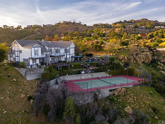 No expense was spared in the design and construction of this timeless view estate. From the moment you enter the grand foyer, you are struck by the sweeping, free-floating staircase that frames the grand parlor offering floor to ceiling walls of glass that draw in the stunning city light views. Entertaining spaces include a private Billiards Suite with sit-down wet bar, a stunning paneled library, a one of a kind formal dining room, a gourmet center island kitchen opening onto a spacious family room with a huge bonus game room with French doors that open onto the amazing outdoor entertaining spaces. Upstairs you will find 3 generously sized junior master suites. A one of a kind master suite that has a private sitting area, amazing views, spa like master bath, fully mirrored exercise room with dry sauna, walk-in closet with an electronic garment rack system and a private viewing terrace to soak in all the scenic views. The grounds offer expansive covered verandas, a freeform boulder pool with multiple waterfalls and fully lit Championship tennis court. Every aspect of this home was built with a level of quality and craftsmanship rarely found in today's homes, providing the ultimate entertaining environment with the privacy and safety of the guard gated community of Bell Canyon. Bell Canyon amenities include community park, equestrian center, miles of maintained trails, tennis courts, gym, organized events, 24 hour guard gated and highly sought after Las Virgenes schools.