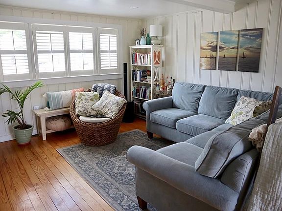 Live by the sea. In the heart of Rexhame,10 Standish Road combines charm and function to create a serene aesthetic, with stunning water views and warm, natural light. This meticulously maintained and updated 2 bedroom, 2 bath cape offers an open floor plan with flexible space. Leave the day's stress at the door as you enter through the mudroom and find custom cabinets to stow life's gear and the convenience of a 1st floor laundry area. The spacious kitchen features Silestone countertops, custom cabinets and an ample island that opens to a sitting room/study/eating area. A beautifully-mantled gas fireplace anchors the front-to-back living room. Upstairs, you will find two spacious bedrooms and an updated, full bath. Outside is a true oasis with a fully-fenced and private yard, outdoor shower, storage shed and composite deck. Not in a flood zone! There is nothing to do but move in and enjoy ocean views, strolls to Rexhame beaches & all that Marshfield offers.