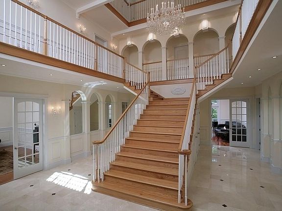 A classic French Baroque manor with seasonal sea views sits in the Osterville highlands. This home has delicate, elegant lines and graceful silhouettes. In addition to more than 8,000 square feet of finished living space, the home has over 7,000 unfinished square feet available for amenities like an in-home theater and spa. A horseshoe-shaped, paver driveway leads to a side parking court with a three-car garage and the front portico of bluestone, Doric columns and custom double mahogany doors. Beneath the mansard roof are quoin blocks, arched windows and dormers and a 12-foot Renaissance window. A grand, three-story entrance hall with flooring of white marble from Spain and Italy, along with cut crystal sconces and a tiered chandelier from Austria. French doors open to sitting rooms, a banquet stateroom and window-lined tea salon, with 10-foot ceilings, cherry floors and picture frame wainscotings.