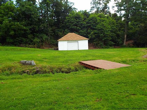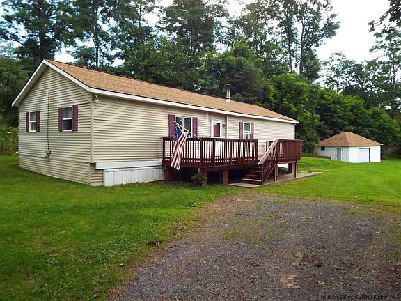 .Sweet ranch in a lovely setting on approximately one acre. Located off a country road with no thru traffic. Beautiful rock cropping's in the back and a side yard with lush green grass and a small bridge over a babbling brook. Three bedrooms and one bath, cathedral ceilings in the living room, sliders out to a small deck in the rear. Larger deck in the front to relax on and enjoy the summer breeze. This started as a mobile home but was gutted, insulated & sheet rocked. Nice big Kitchen and dining room combination. All rooms are spacious and bright. This is the perfect get-a-way or full time residence. So convenient to Hunter Mountain, Windham, Saugerties Village, "Hits". Live in it, Rent it, ENJOY IT! Looking for a cash deal .