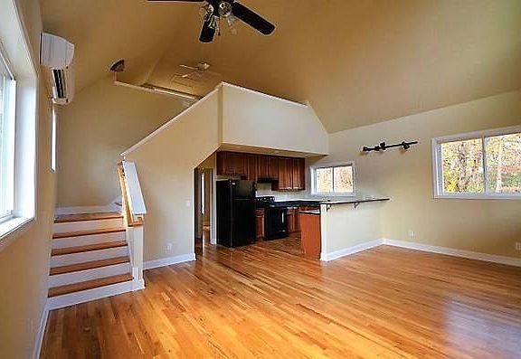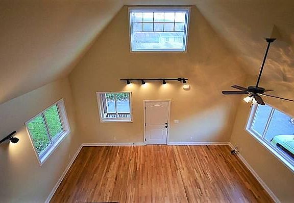 Adorable cottage! Main floor has Living/Dining/Kitchen area, one bedroom with walk-in closet, bathroom and laundry area (hook-ups for electric and water) for your own washer and dryer. The 1-1/2 stories with cathedral ceiling and large windows is bright and airy. The large loft has been used by past tenants as a bedroom (there is no closet in the loft area though). PLUS an 8X8 foot outside storage building. Please call for an appointment to see today--it is available now. Application for rental is accepted after showing. No dogs or cats. No smoking in or anywhere outside at this property. Parking space next to home is big enough for two smaller-type cars (won't accommodate more than one larger vehicle). Tenant pays for their own trash service. Landlord/Owner pays for water/sewer and landscape maintenance.
