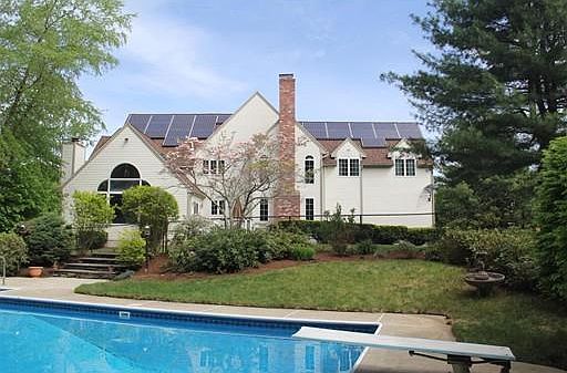 Truly outstanding, 3654sq ft, Tudor-front home on beautiful, 0.99 acre lot in a wonderful Hopkinton neighborhood. Near Lake Whitehall Reservoir, with access to trails and conservation land. Refinished hardwood flooring, new carpeting, fresh paint throughout. Stunning, brand new, marble, master bath with high-end, BainUltra, therapeutic hot tub, and walk-in shower+bench. Updated kitchen with stainless GE Profile double ovens, inductive cook top, and Bosch dishwasher. First floor has large family room and sun room, each with vaulted ceiling, balcony and fireplace, plus large, sunken living room, 2 updated half baths, and laundry. Second floor has 4 bedrooms plus a second, updated, full bathroom. Finished basement with bar; 2 car garage; Trex deck, and 20'x40' pool with heater. Energy efficient windows; two top of the line, Lennox central AC/heat pump units installed in 2013, and leased solar panel system installed in Oct 2014. Relax and enjoy turn-key living without the wait.