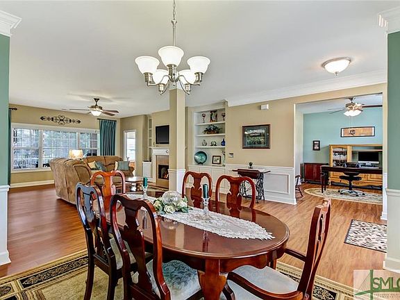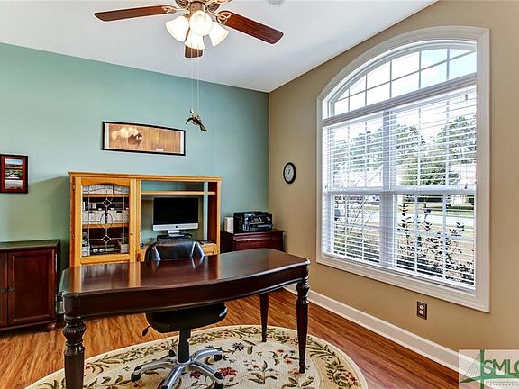 MOVE IN READY! Located in The Gates at Savannah Quarters??, this exceptional 3 bed 2.5 bath plus bonus room home boasts a breathtaking lagoon view and desired open floor plan including a large formal dining room, private office/study, and large family room complete with beautiful custom built-ins and a warm fireplace. Many culinary delights are sure to be made in the home's spacious kitchen featuring gorgeous granite counter tops, SS appliances, and a generous pantry. This sense of sophistication carries into the master suite where you will find a lovely tray ceiling w/ recessed lighting, 2 closets providing ample storage space, and a luxurious master bath complete with double vanity, jetted tub, and separate shower. Entertain guests from the privacy of your screened porch and fenced backyard, or take full advantage of the beautiful lagoon as you step out of your own back gate to fish! Home is conveniently located just minutes from the community center, playground, and zero entry pool.