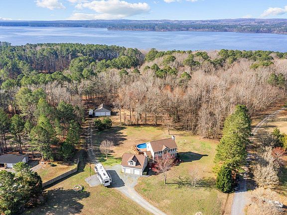 Wonderful outdoor lifestyle opportunity with privacy and no HOA in small neighborhood. The 2.8 acres are flat, grassy and mostly cleared. Large deck mostly surrounds above ground pool with a 6 foot deep section. 15 minutes to Pittsboro, Chapel Hill and Apex. ONLY a couple minutes to Jordan Lake marina. Butts up against Army Corps of Engineers property. Bring your boat and other toys that are easily stored in the separated, spacious 30x36 3 bay storage building with lots of additional 2nd floor storage. Speaking of extra space, massive 2 car garage has possibility of adding space on 2nd level since it has electric and could be plumbed easily. This one owner property boasts 4 bedrooms, 3.5 baths with a beautiful stone fireplace in large living room. Granite countertops accentuate the kitchen space that includes a breakfast eating area with large glass window overlooking pastoral backyard. Upper deck which overlooks pool area is perfect for grilling and outdoor dining. Fully finished basement. Basement is unpermitted and included in total sq. footage. 30K lower than appraised value!