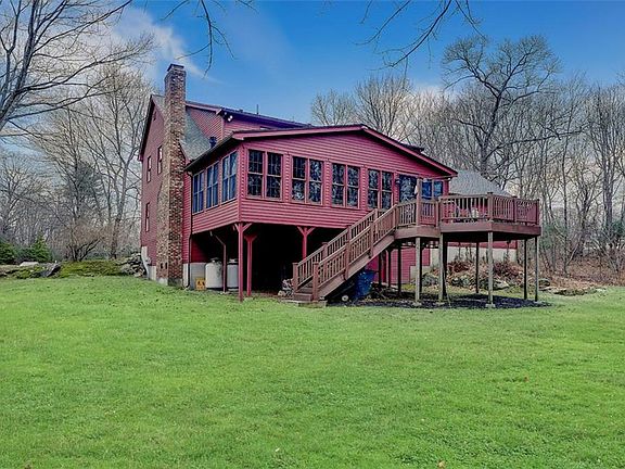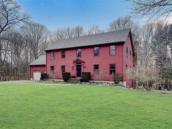 Beautiful custom Saltbox Colonial situated at the end of a cul de sac on a near 3 acre lot. This home offers 3 bedrooms, 2 1/2 bathrooms. The gourmet kitchen has granite counter tops, custom cabinetry and stainless steel appliances, including a high end Vulcan range. The kitchen is open to a great room offering a gorgeous brick fireplace, hardwood floors throughout. A sun-filled 3 season room with wooden beams and beautiful windows overlooks a private wooded lot. The 2nd floor you will find a large master bedroom with an en suite bathroom and walk-in closet. There are also 2 additional generously sized bedrooms with a full bath. The finished walk-out basement has a media room, a full bar area and workshop. This home is ideal for plenty of family gatherings and entertaining. 2 car garage. Easy access to highways and shopping.
